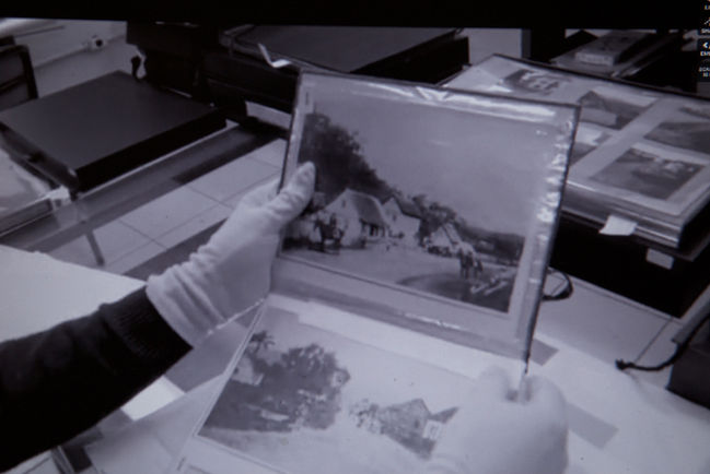 Invited by the Museum of Image and Sound of São Paulo to activate the archives of the institution, this project was made collaboratively with Joerg Bader, artist and curator. The resulting work was an exhibition with two films. For the construction of Juparassu, the fiction A noiva da casa azul [The bride from the blue house], by Murilo Rubião was a starting point to selecting photos from the museum’s collection. An interpretation of the text is narrated and put in relation to images, which barely illustrate the text and often diverge from its lines. In this short story the changing landscape during the character’s travel is related to the loss of memory and the impossibility of capturing time. In the fantastic realism of a sudden failed meeting. We recognize what an archive may be, the illusion that materials can contain the presence of something unachievable as the past.